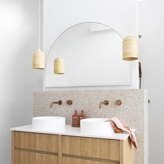 It’s not all doom and gloom! If your bathroom has great ventilation and air flow, these natural fibre lights can transform your space into a soothing oasis. The gentle light makes your worries fade away, giving you a calm and peaceful place that combines the beauty of nature with great design.